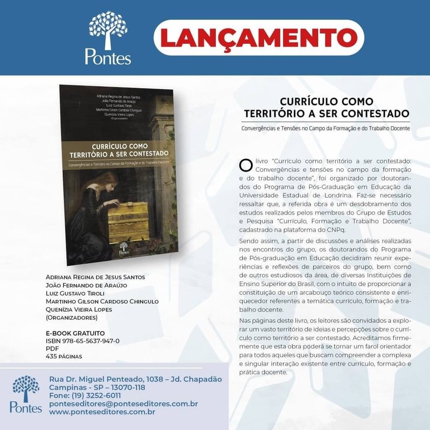 É com muita alegria e entusiasmo que informamos a publicação do nosso livro "Currículo como território a ser contestado: convergências e tensões no campo da formação e do trabalho docente".